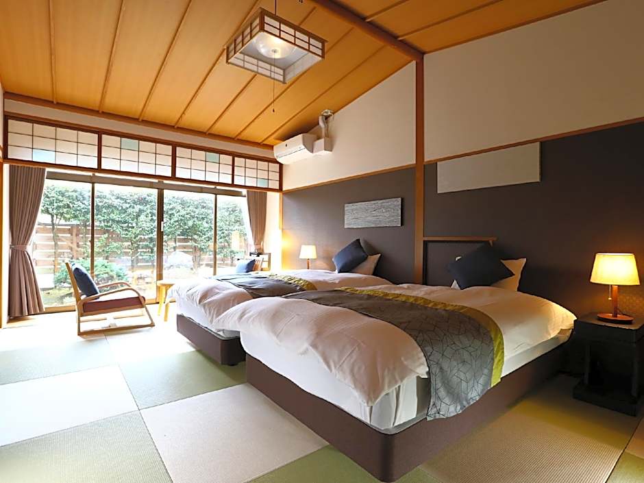 Guests will have a special experience as this suite provides a private open-air bath. The spacious suite features 1 bedroom and 1 bathroom with a shower and free toiletries. The suite offers air conditioning, tatami, a tea and coffee maker, a safe deposit box and a flat-screen TV. The unit offers 2 beds.