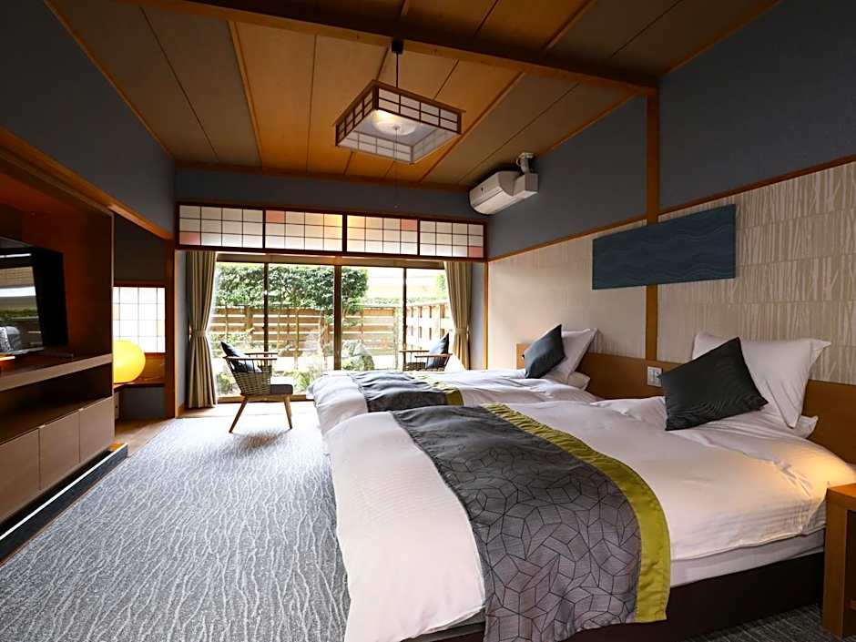The twin room features air conditioning, tatami, as well as a shared bathroom boasting a shower and a bidet. The twin room provides a safe deposit box, an electric kettle, pajamas, heating and a flat-screen TV. The unit has 2 beds.